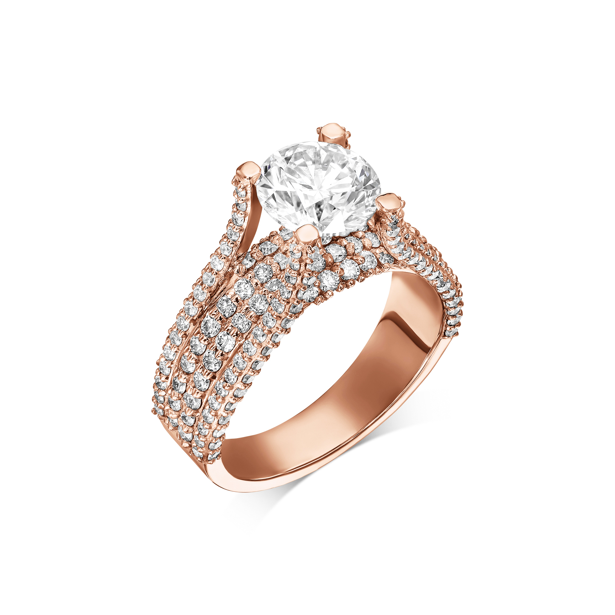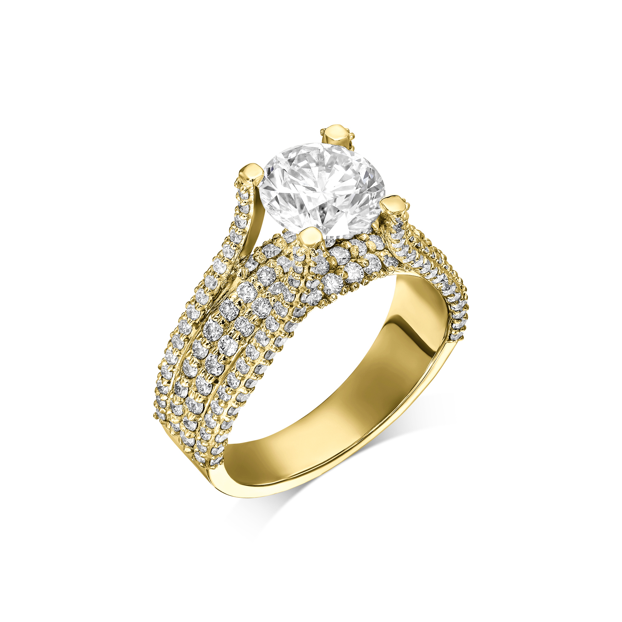 טבעת יהלומים מרשימה וייחודית , משובצת יהלומים טבעיים בחיתוך עגול במשקל 1.00 קראט באיכות E\Si ויהלומי צד במשקל 1.10 קראט , אשר נותנים לטבעת מראה ייחודי ומרשים .